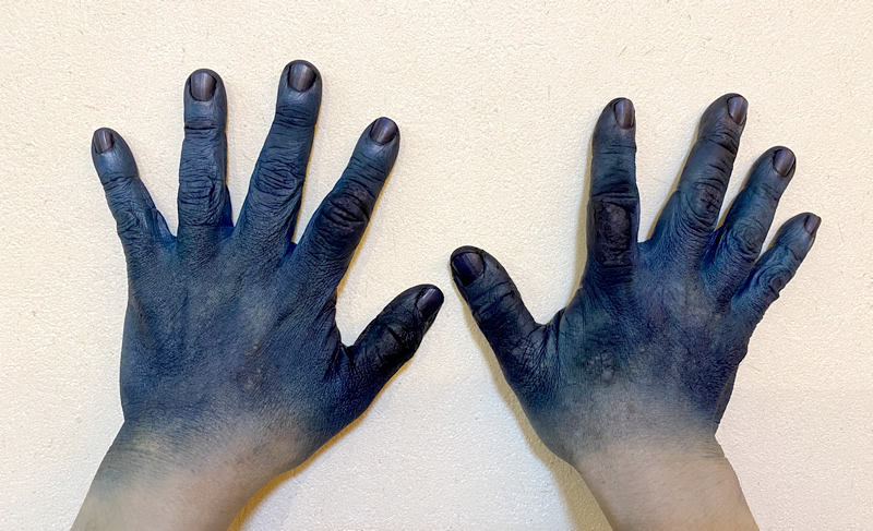 藍の手 素手で作業をするため、手が藍色に染まります。