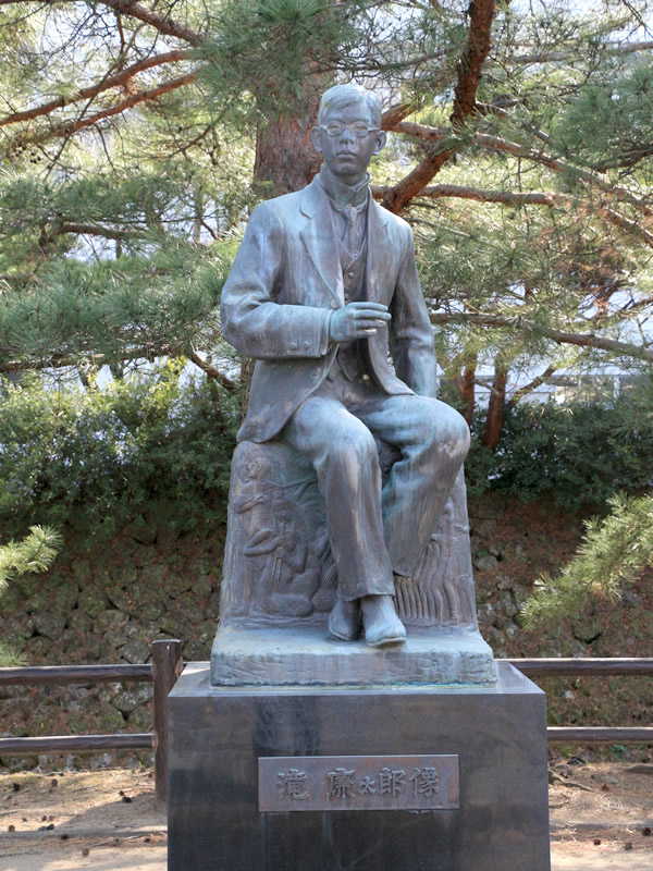 (日出小学校前の「瀧廉太郎 像」朝倉文夫 作)